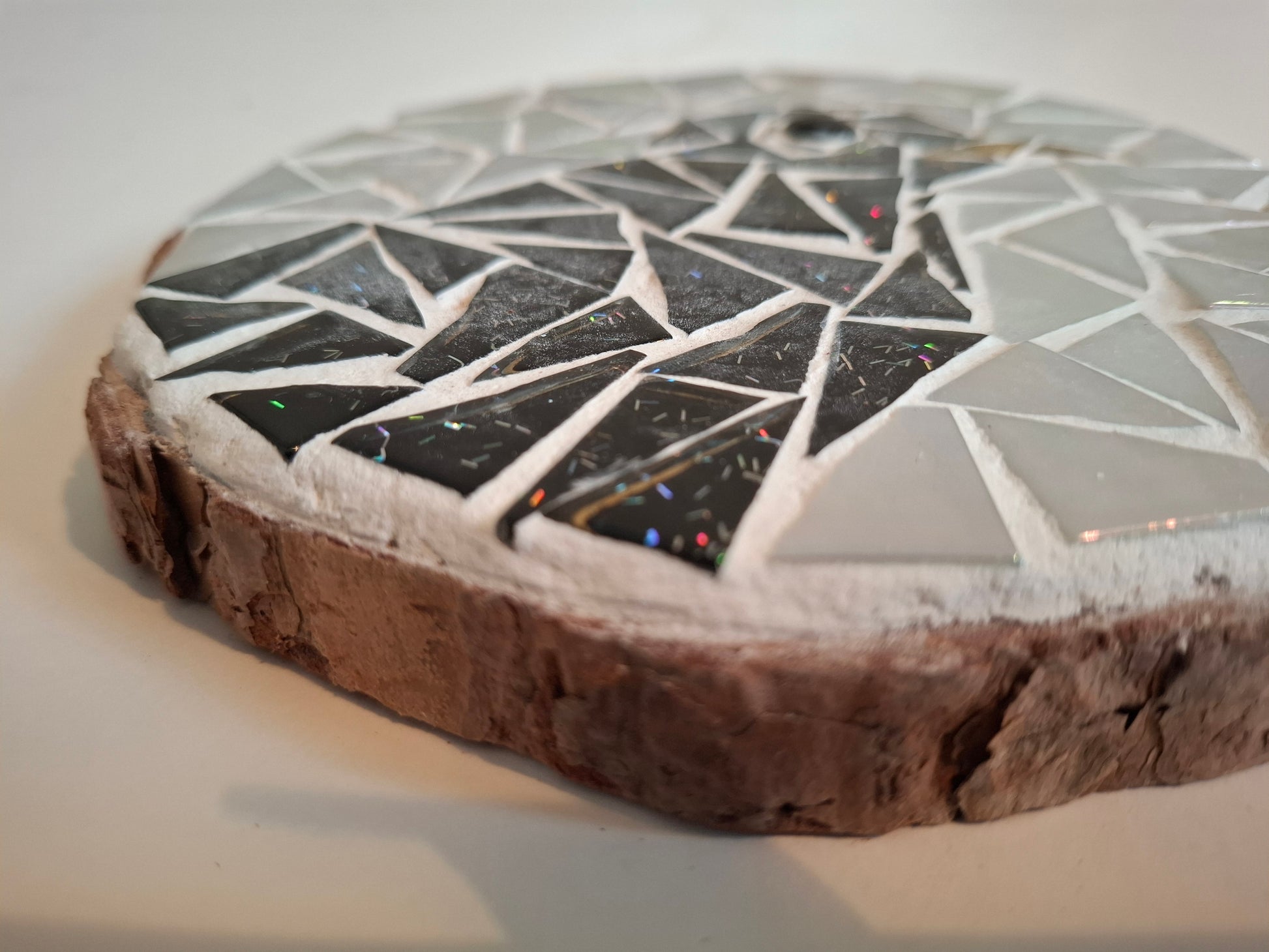 I am drawn to mosaic art through my appreciation of imperfection and uniqueness; something beautiful is created from broken pieces. This resonates because of my personal recovery from neurosurgery to remove a brain tumour, rebuilding my life and my health with a different version of me.
