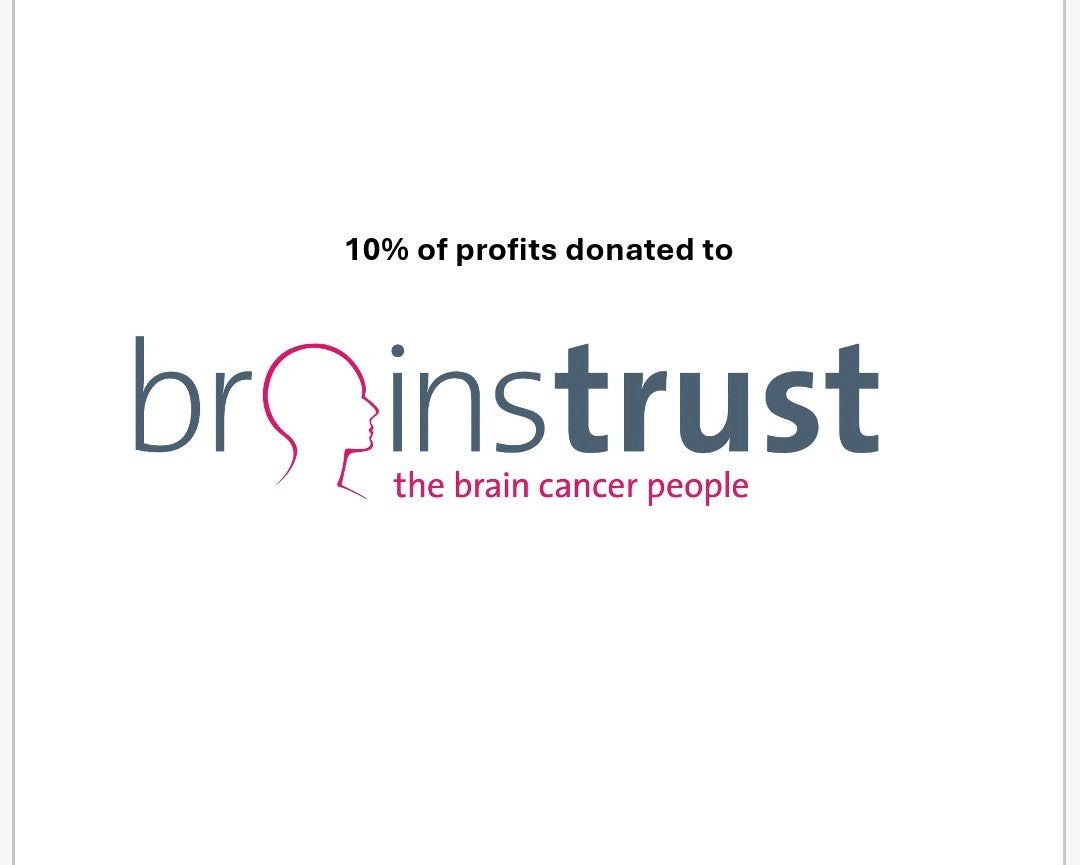 To show my appreciation for the support I continue to receive from the charity brainstrust, I will donate 10% of my profits to their work supporting people with brain tumours.