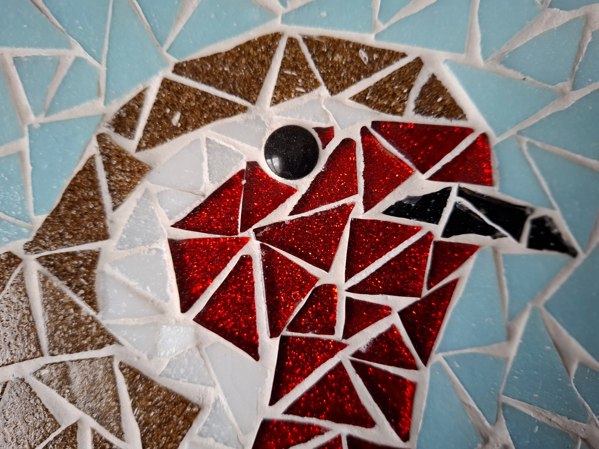 I am drawn to mosaic art through my appreciation of imperfection and uniqueness; something beautiful is created from broken pieces. This resonates because of my personal recovery from neurosurgery to remove a brain tumour, rebuilding my life and my health with a different version of me.